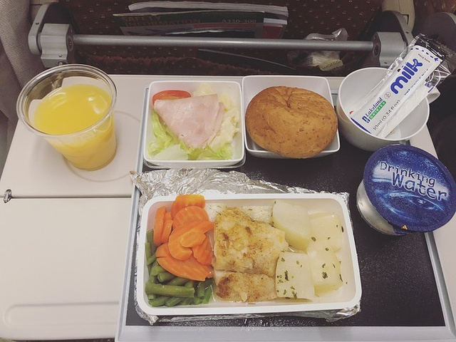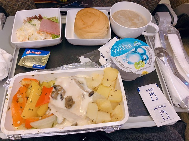 飞机餐来了,好好吃,但是面包很干涩我没吃