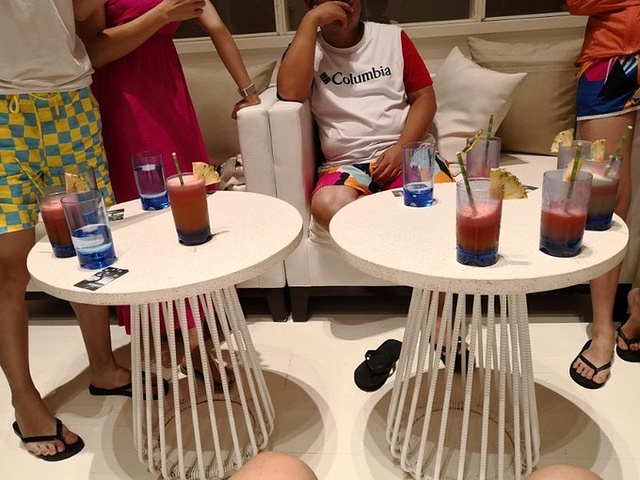 吃饱了,两点才能入住,就在主酒吧坐坐,点了史密斯和summer(喜欢甜的人应该很喜欢summer的)喜欢坐在上面那排吊椅上玩沙子,沙子比下面那排的多也比较细软,但是下面那排位置可以给手机充电🔋。