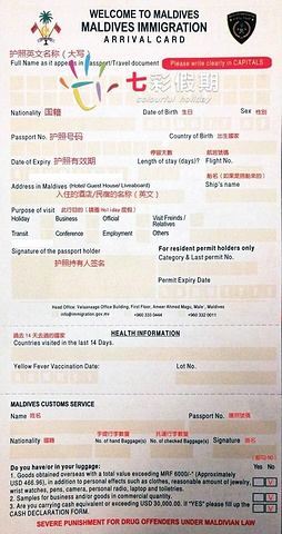 下飞机过海关,有三种队伍,一种是马代自己人排的,一种是工作签证?还有一种就是我们游客的了。排在游客 通道 就好了。 马累 的工作人员真的只看了一眼入境卡就咔咔咔盖章了,我还担心写错了不行呢。然后出去等行李,其实就在入境柜台的后面,拿到行李出门就看到拿着酒店牌子的一群黑人,他们会举着酒店牌子的,很顺利找到接我的小黑,等待其他同行伙伴陆续出来后大家就上车去葫芦 马累 了(大部分人都住在这边)。这是我们住的酒店名称