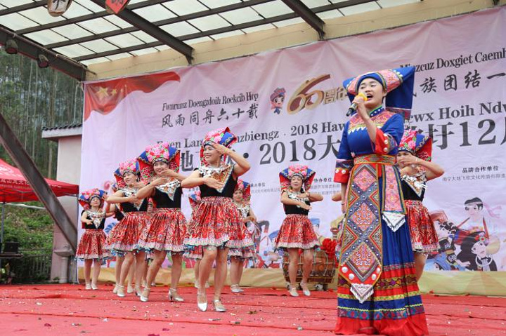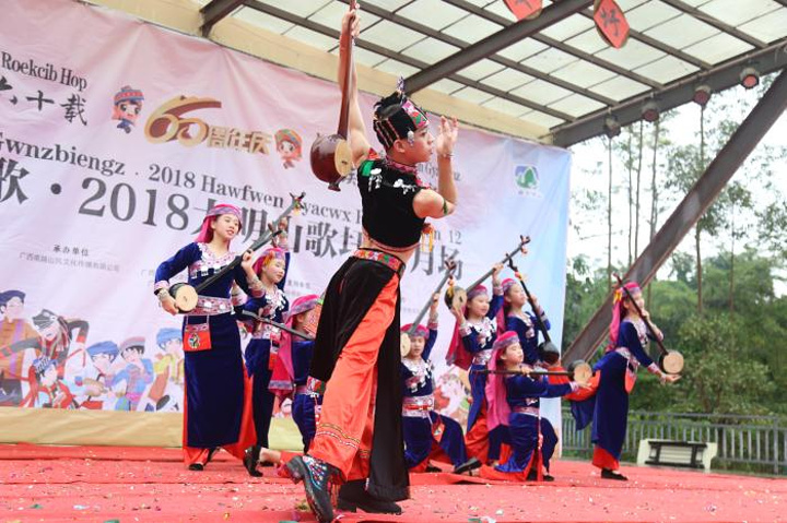 一曲舞毕,下午开启半场壮语山歌对唱,听说每场都有,爱好山歌朋友,可以直接上台攻擂挑战擂主。
