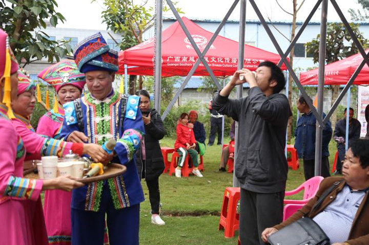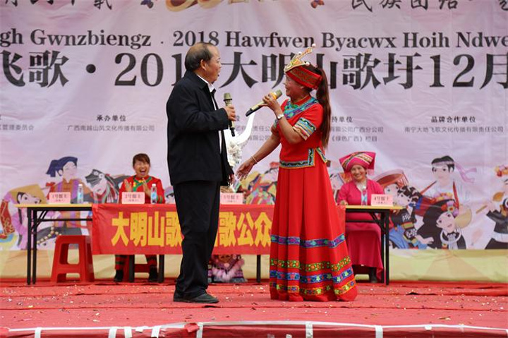 攻擂时间结束后,台上挑战者还意犹未尽,抢在主持人前继续对着台下评委献唱。阿西吧,听不懂壮语的我,一愣一愣的,都恨不得找个时间去补习下壮语。