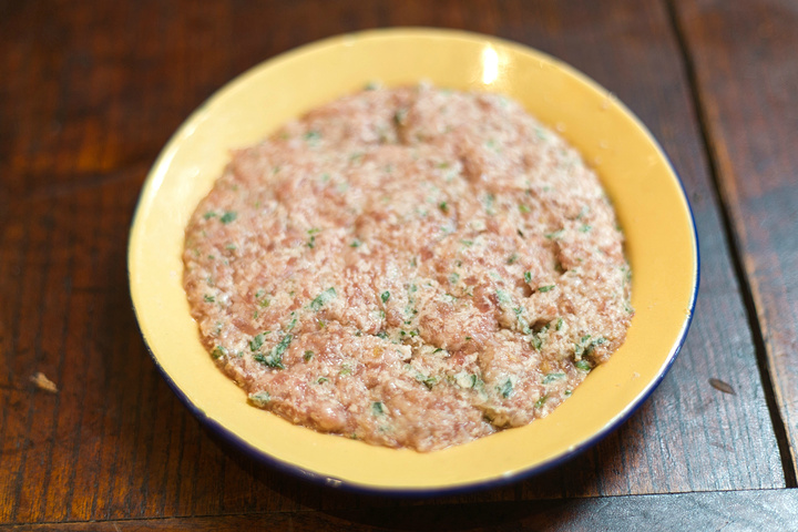 弹崩子,这是一道非常地道的自家手作香菜圆子,吃的时候可以根据自己的喜好用勺子舀起一小块再放在火锅里煮,几分钟之后熟透了的味道非常鲜美,有兴趣的朋友可以自己试一下!