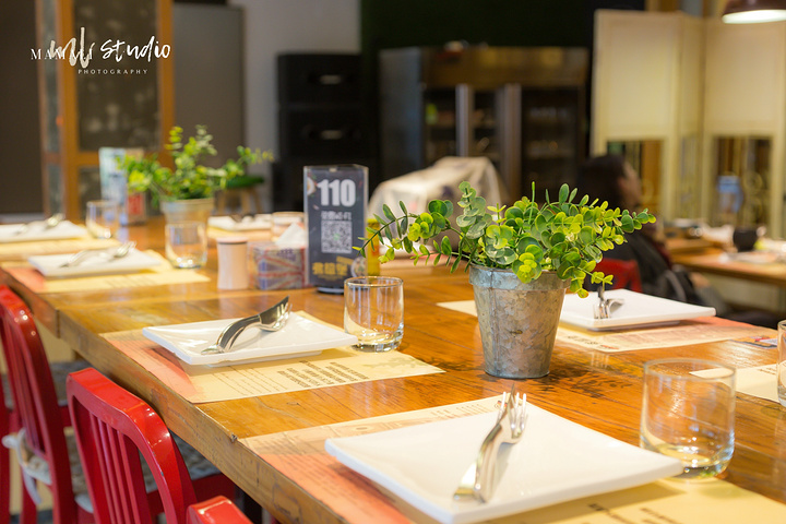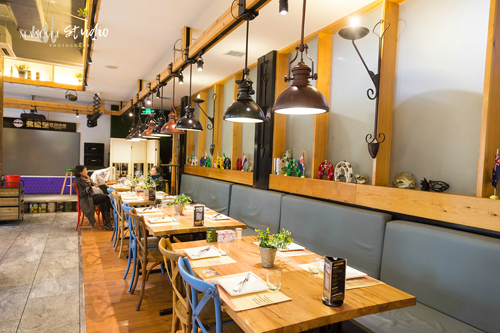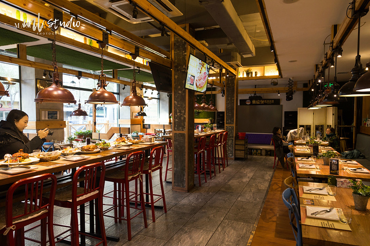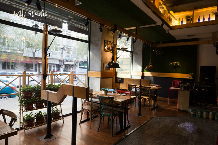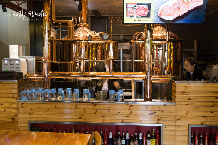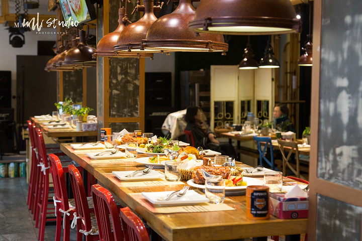 走进店里,会感受到扑面而来的工业风,穿着围裙的服务生,也是一副洋气的打扮。最里面有个小舞台,不定期会有驻唱,氛围很赞。