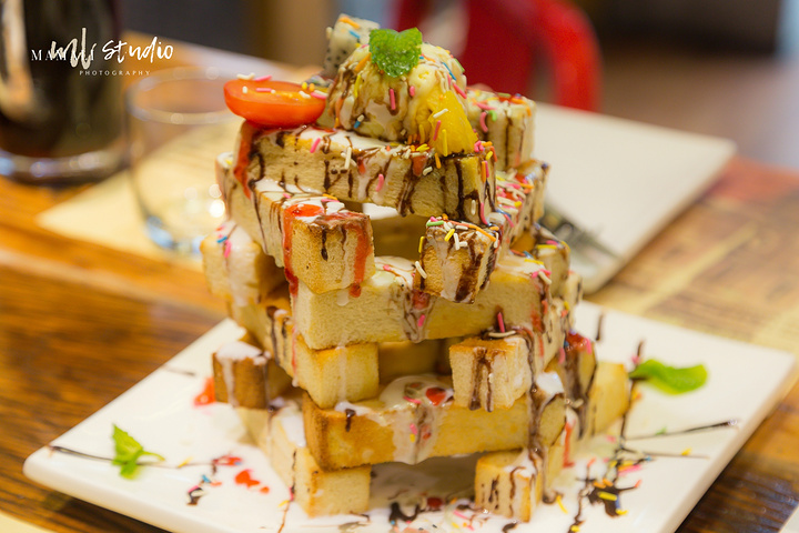 店里的吃的很德式很正宗,德式咸猪肘配德式酸椰菜、德式香肠总汇、巴伐利亚烤鸡肉培根披萨是他家的特色。