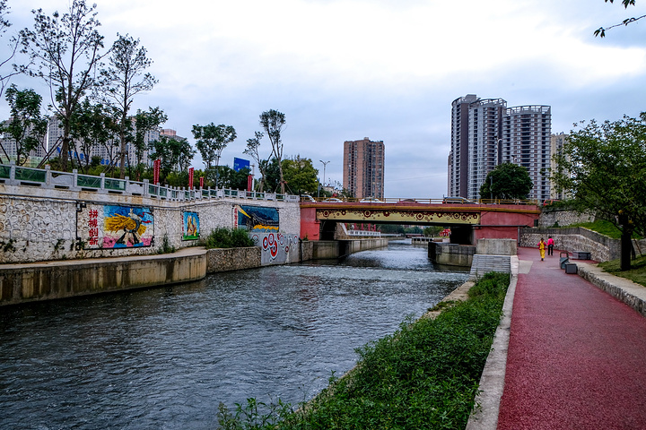 办理好宾馆住宿手续,我们沿着水城河步行前往水城古镇。水城古镇是六盘水市政治、经济和文化的发源地,因四面环水,故名“水城”,始建于清雍正十年,至今已有280余年的历史,现在是最具代表性的旅游景点之一。