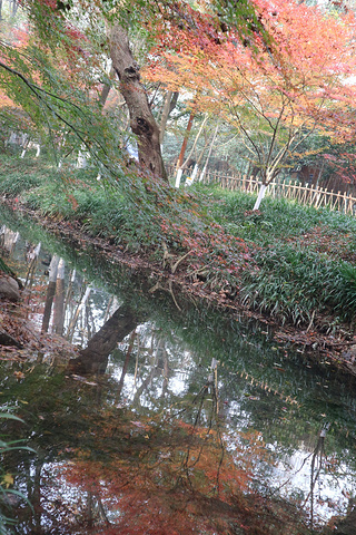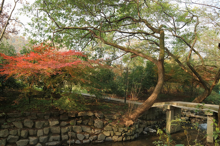 大约不到2公里,就可以看到一条溪流和两旁的枫叶,