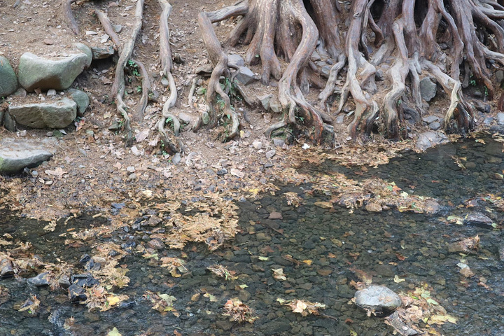 盘绕曲折的榕树在大自然制造的镜子(溪水)里,