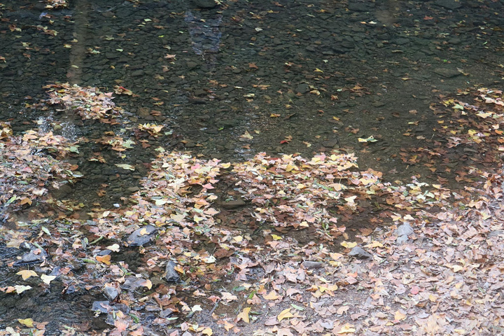顺带着落下的叶子一起流向山脚处。