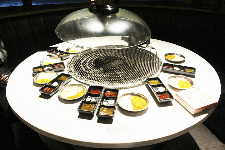 虽然西昌最著名的是火盆烤肉,但是很显然,这里用的不是火盆。网状的烤架下用的是电热丝,桌子顶部一个罩子用来吸烧烤产生的烟。相对于火盆,电热丝似乎更干净一些。