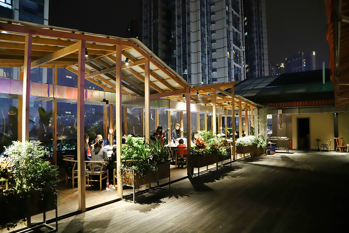 餐厅似乎比较大,进门就是一个开放式的露台。餐厅的装修相对而言还是比较简单的,宽敞而大气。