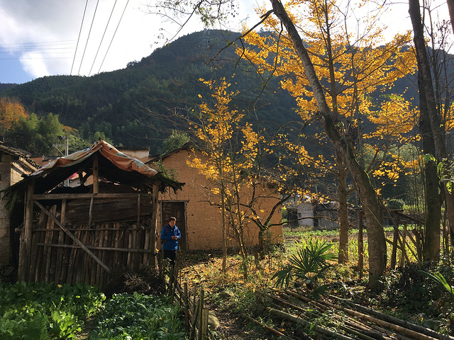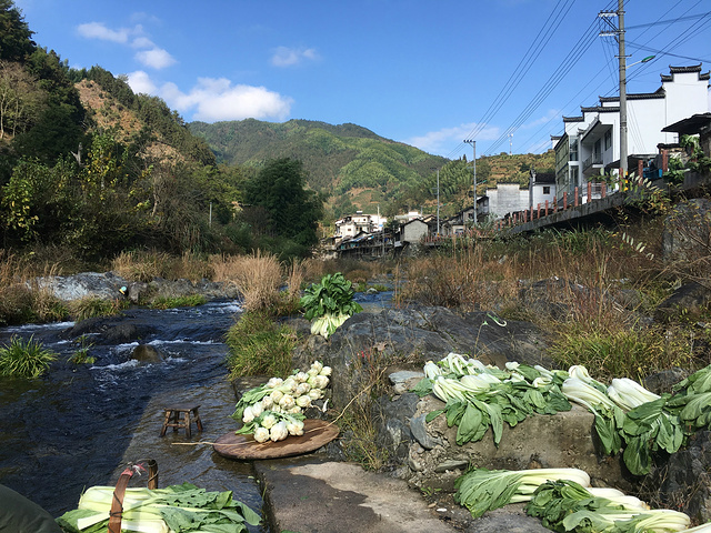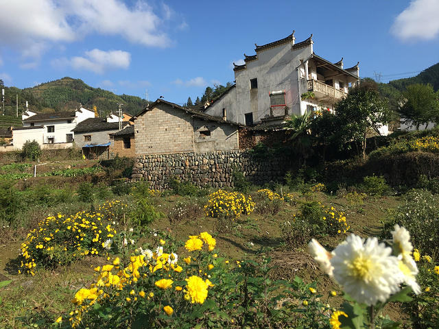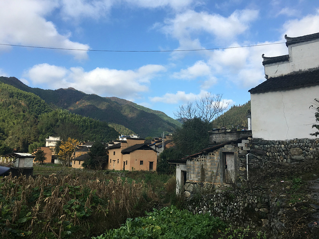 上午从宏村包车去黟县泗溪,走Y102和X030道路,单程20公里左右,八人包车费往返150元。今天是个多云的晴天,蓝天白云终于出现了。路上在一个观景台下车,看到了云雾弥散的景色。世界遗产地宏村的山那边,黟县泗溪——绿溪氧吧、土楼部落、香榧之乡。一条称“甲溪”的小河长约12公里,由北而南,流经泗溪乡。清澈见底的潺潺溪水,是村民的天然饮用水和生活用水。泗溪村的森林覆盖率达98%以上,一座天然氧吧。在泗溪的历舍,仅有百余人口的历舍村,拥有二、三十幢六、七十年代建造的土墙房,依山傍水的一幢幢黄泥墙土楼上,竖有高耸的马头墙。体现徽派建筑元素的精华。当地人朴实好客,我们还在一村民家中喝了茶。泗溪乡以全国正宗香榧产地而远近闻名。作为地球上最古老的植物之一,它壳薄、肉满、香脆可口,深受欢迎。香榧仁肉有丰富的脂肪、蛋白质、糖份及碳水化合物,并含有多种维生素和不饱和脂肪酸,有极高的营养价值。食用后对化痰、止咳、润肺、通便、驱虫、强身,都有奇特的疗效,是不可多得的坚果。