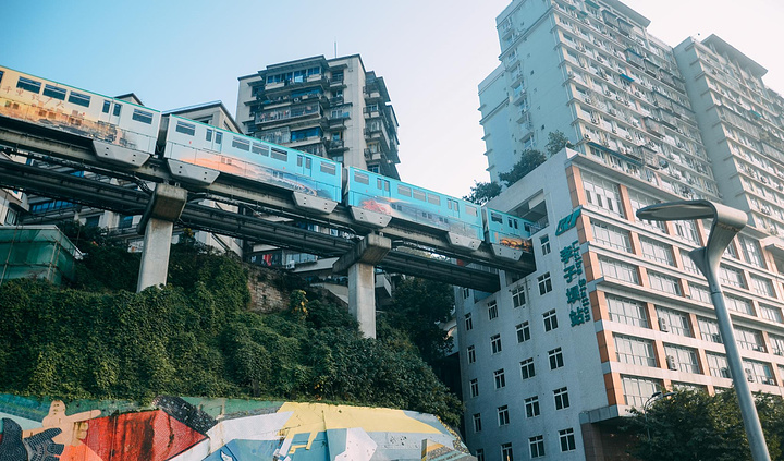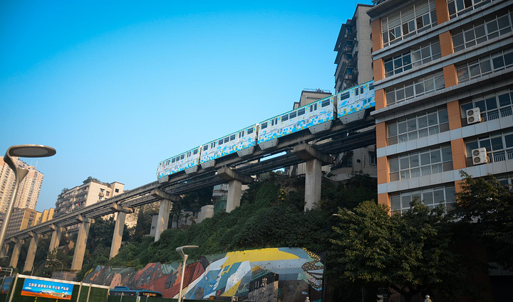 穿越房屋,每天都会上演轻轨穿楼越壑,空中飞驰而过的神奇一幕。