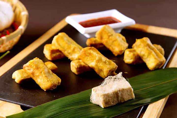 徽州毛豆腐是一道徽州名菜,徽菜系的代表之一。通过传统工艺人工发酵,豆腐表面生长出一层白色茸毛,其中植物蛋白转化成多种氨基酸,或煎或烤,上桌时辅以佐料。传统的吃法有油煎或烤制,配以当地土辣椒酱,现在开发出火腿毛豆腐锅仔、毛豆腐汤、蛋煎毛豆腐等多种菜品