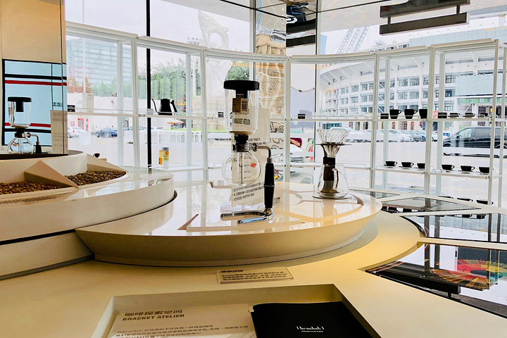 三里屯店是在工人体育场北门独立的三层独立小楼,整个建筑和室内设计是由获得了室内设计红点奖的设计团队操刀。一层作为开放式咖啡制作空间和咖啡探索空间,展示了从品牌本身到整个咖啡文化的理解与诠释,从全球精品咖啡知识概览,到Bracket当季严选的4款精品咖啡介绍,再到精品器具,推荐埃塞俄比亚日晒的虹吸壶。