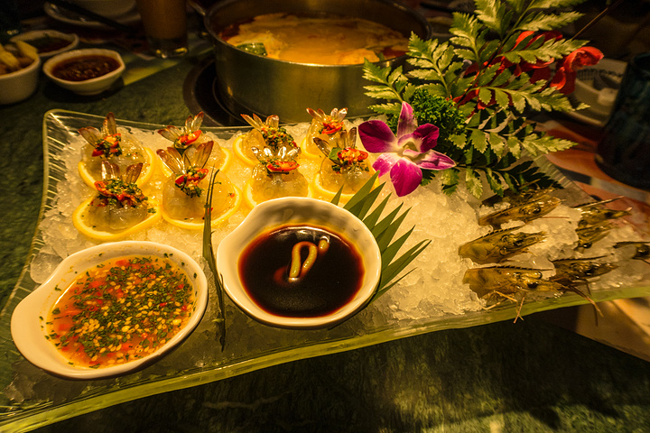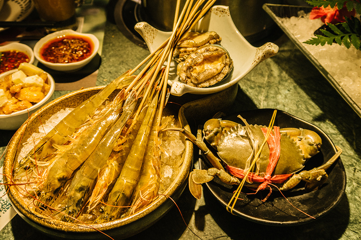 海鲜拼盘海鲜阵容庞大,活虾、鲍鱼、青口、天鹅蛋、巴沙鱼、大生蚝、鱼滑、虾滑蠢蠢欲动。新鲜还会蹦哒的海鲜老虎虾、螃蟹,真的让人一秒就感觉到了 泰国 一般。