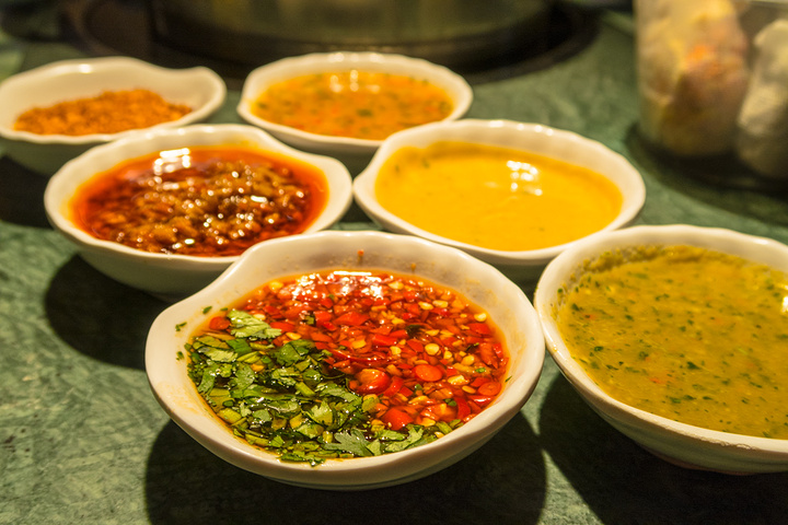 配着这美味的锅底,有七种口味的味碟,特色麻辣酱、招牌柠檬薄荷、川式小米辣、浓香花生酱、传统泰式酱、海鲜香辣酱、干碟。甜辣、浓香、醇厚、干香、特色、油辣、清爽,解锁搭配碰撞出不同的泰式风情。