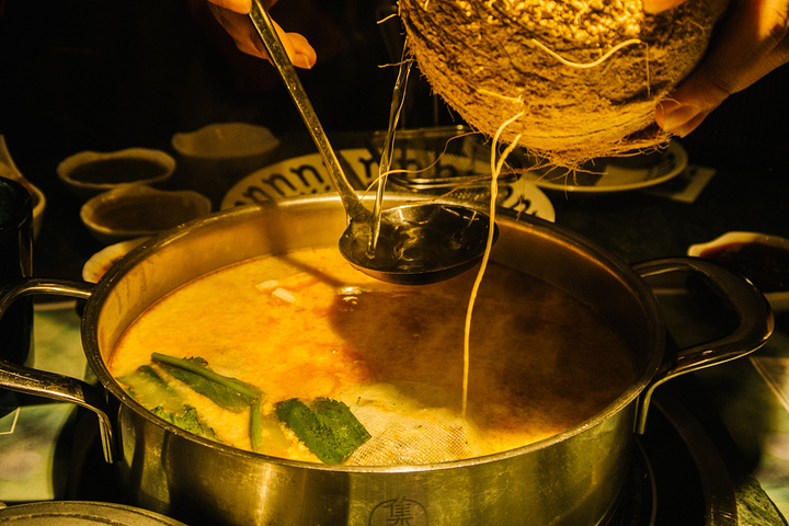 成都 不仅有麻辣鲜香的传统火锅,还有酸爽可口的泰式火锅。奶白色的一锅鲫鱼汤微泛涟漪,香茅入锅,立即从视觉和嗅觉上给鲫鱼汤增色添香,两个料包的依次入锅,秘制冬阴功的化开,新鲜椰子汁的收尾,一场盛宴从一口锅开始沸腾。这家叫集渔的泰式海鲜火锅,真的是超多人排队,即便是冷空气来袭,2摄氏度的气温下,依旧没有让排队的人儿减少。