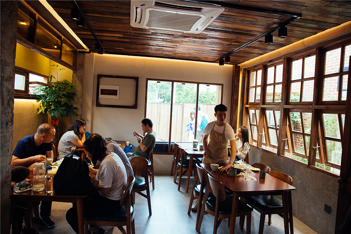 泛黄的灯光让人倍感温馨。走进了瞧,里面格局明朗,裝修的风格很喜欢,看起来简单却很有味道。墙面部分采用了裸墙,部分刷白,加上旧旧的木头,这样的风格虽然看了好多次,但是每次都觉得既简单又大气简约宽大的木桌让人不禁赶快入座。