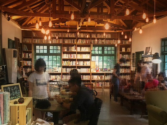 周末原因,好几张桌子坐满人了,不过大多数客人没有再看书在玩手机和拍照,应该是游客吧 。我也是匆匆一来的游客,悄悄拿出手机拍下书店,继续我 台北的散策之旅。
