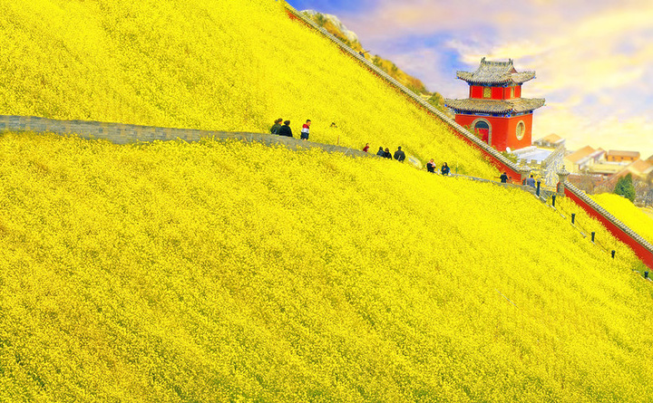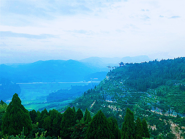 春日的蟠桃园桃之夭夭灼灼其华,而夏秋时节,蓝天、白云、绿树相互映衬,美如油画。
