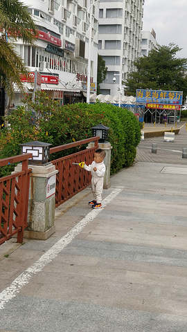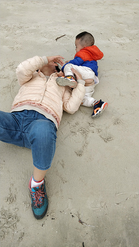 步行了几百米后,到达沙滩,那里风景美不胜收。首先看到的是个大锚,儿子直接爬上去玩。走在沙滩上,那些沙子细得和我们平时吃的盐几乎一样大小,非常的轻柔。海水清彻见底。儿子开心的直接趴在沙子上面,在那里不断的拨沙子,甚至还在上面打滚。我也忍不住脱了运动鞋,在沙滩和海 水里 面走。妻子在一边拿手机,给我们拍了些视频和相片,还和儿子坐在沙滩上玩耍。此时海风轻轻袭来,远眺远方的海水和蓝天,海天一色,让人无比陶醉。另外,我们还注意到了一点,来这里旅游的游客,大部分都是老年人,很少有年轻人,就更不用说像我们这样的家庭户了。在海边有一个游乐场,现在是淡季,没有人营业,里面很多的游乐设施是可以玩的。儿子最喜欢玩的,是滑梯。在这里遇到两个 四川来的老人带着孙子在玩,小家伙们跑上跑下的,自己从楼梯上去,钻进滑道,“嗖”的一下就滑下来,玩得不亦乐乎。过了一会,他看到那个小哥哥去坐观光车,他也要坐。去问司机,说要20元/人,小孩要10元。我和他说:“我们两个人坐,小孩还这么小,就不收钱了吧。”结果,花了40元,我们仨看了一圈巽寮湾 的风景。儿子坐着坐着,就睡觉了。在车上睡了一会,等他醒来时,已是4点多,我们一起在附近逛逛,儿子喜欢吃海苔,我们买了一包,才10元。儿子又看到了一个吸水管玩具,我一问价格,要20元,太贵了。然后我又问旁边那个吹泡泡棒多少钱,店主说10元。我们直接走开了。因为平时那个东西只用3元就可以买到。经验之谈:如果到一个陌生的地方,你不清楚那里的东西卖得贵不贵,只需要问店主那些平时你经常买的东西是多少钱,就能够知道了。他们这里的东西,足足比平日市场上的贵两三倍,不值得。