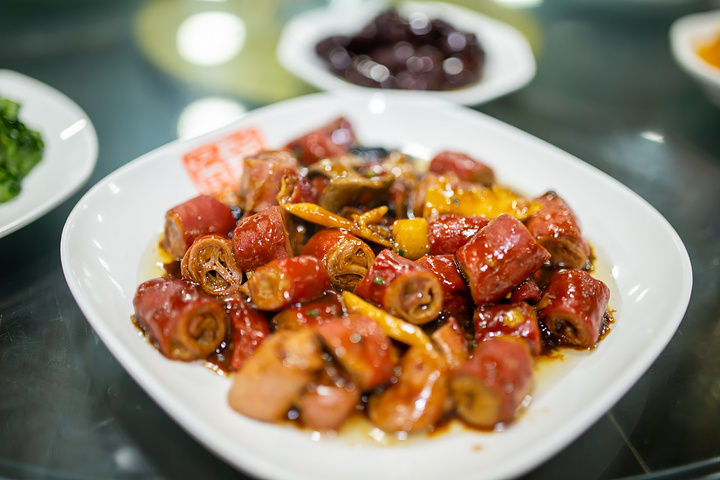 老牛同肠,招牌菜之一,楼主很少在外面吃这些同肠呀,内脏呀,原因就是怕处理的不干净,不过老牛窝里的真的没让我失望,入口没有一点异味,没有一点腥味,还有 无锡 甜
