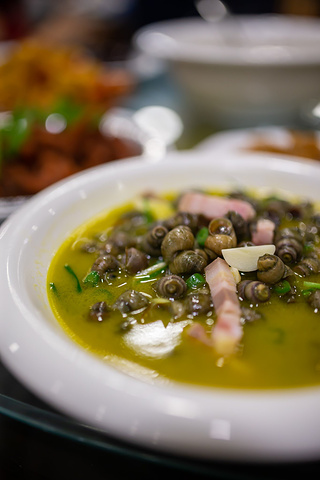 上汤蛳螺( 无锡 话喊“斯(si 第一声)螺”(luo 第二声)这个菜可能不太推荐,理由一:吃起来比较麻烦(小伙伴说她要用牙签才会吃,在外吃饭女生们一般都比较内敛,男士们点菜的时候请注意啦)理由二:味道一般,这个菜其实在 无锡 另外一家饭店会相对拿手一点,就是 无锡 的西新饭店,如果有小伙伴愿意去尝试的话可以搜大众点评或者美团,在 无锡 城区有多家,一家在 无锡 的三阳百盛附近,另外一家在五爱路附近。。。。