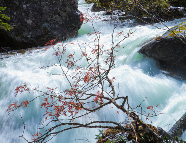 海拨3700米的木格措,是川西高原的一颗明珠。从古到今,风云变幻,尘世变更,人们已经从简单变成了复杂,原始的生活方式似乎也被现代文明所取代。 但是,木格措的水,始终还是保持了千百年前的的那种纯净和激情,汹涌澎湃地穿过杜鹃峡谷,其产生的雾气,将满山的树木和杜鹃林催得一片翠绿。