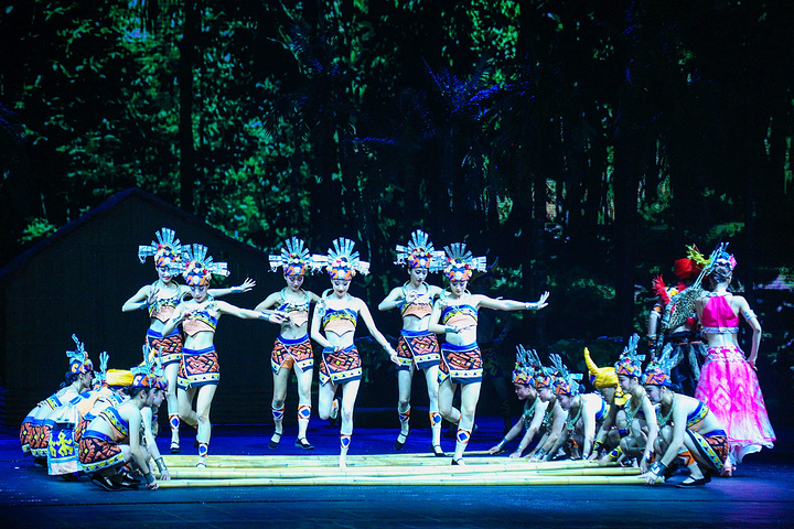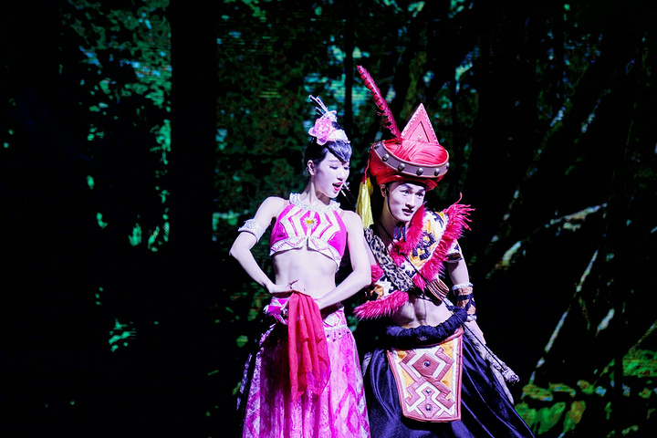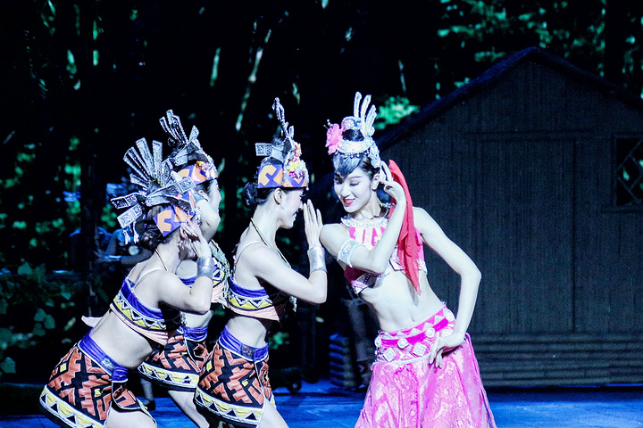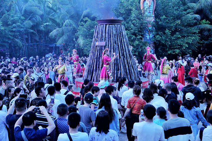 其余的演出还有黎家摘椰子表演、狩猎舞、程府招婿、穿越快闪、锅庄狂欢、上刀山下火海等等。