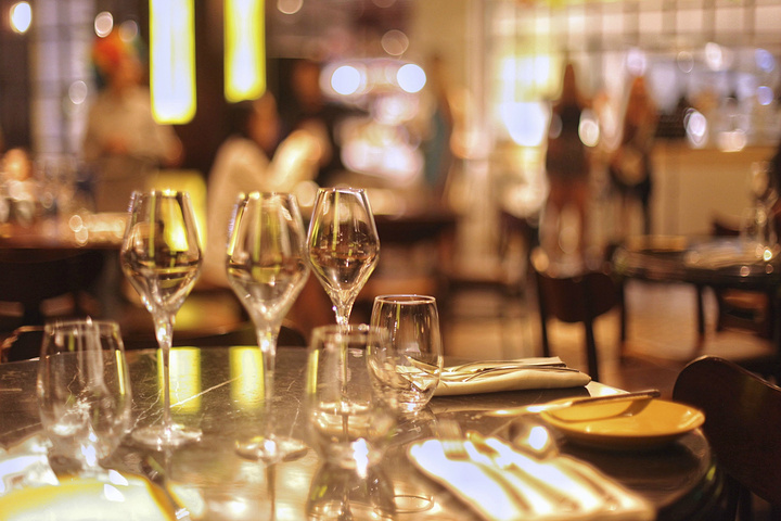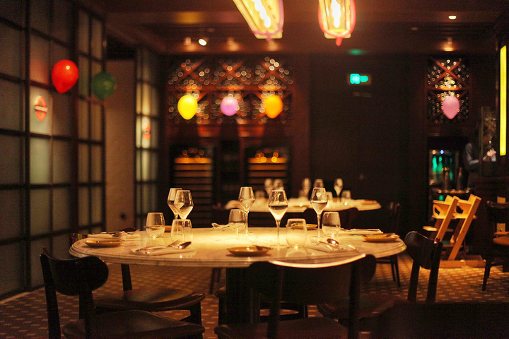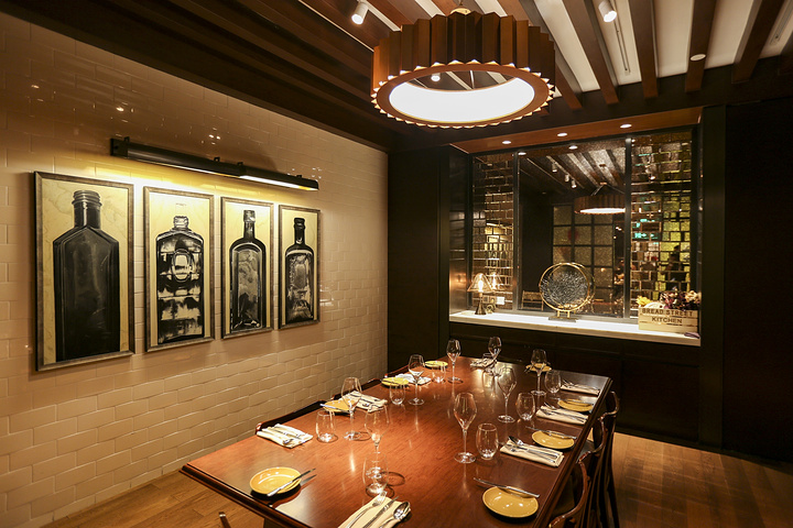 餐厅内的黄色灯光显色很是温暖,也营造了浪漫的就餐氛围,各个区域的功能独立分开,又巧妙地融合在一起。
