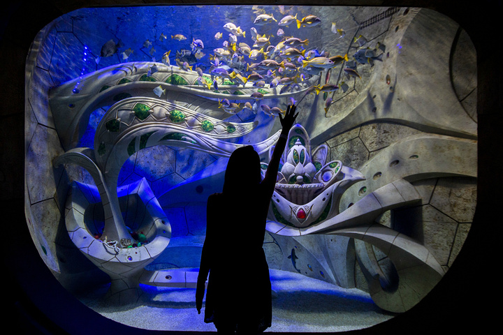 失落的空间水族馆位于酒店的G层,在这里,仿佛进入了亚特兰蒂斯的海底世界。
