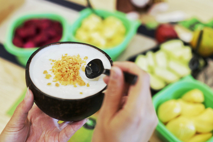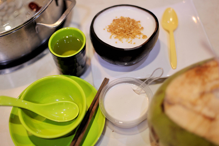 在等待椰子鸡煮熟的时间里,品尝了朋友推荐的椰子冻,很Q很弹,真的不知道如何用语言来形容,非要说的话那就是“太好吃了”。