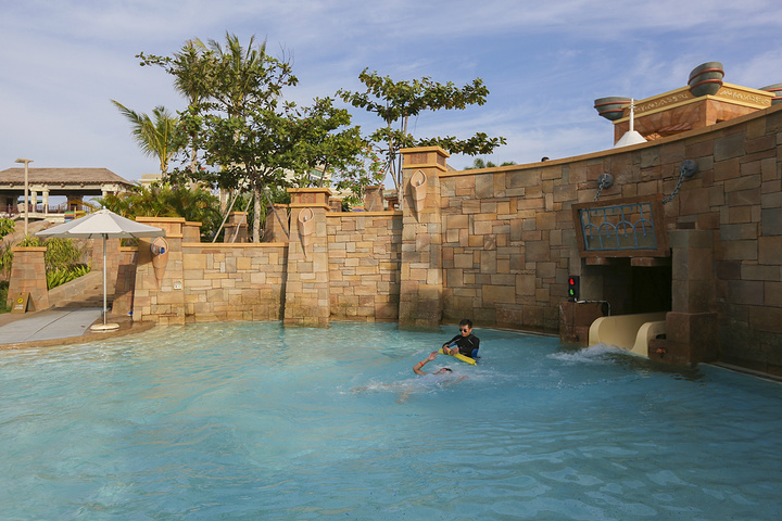 亚特兰蒂斯水世界的项目丰富多彩,除了以往的水上项目之外,最值得期待、最具挑战性的当属“海神之跃”,以75度近乎垂直的角度,3秒内滑下几十米的长度,真是太刺激了。