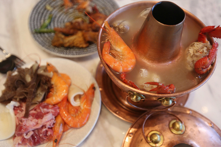 点了一份菌汤锅底的小火锅,满满的各式海鲜,是不是很诱人?