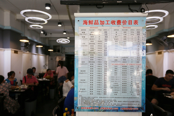 海鲜加工,会按不同的做法收取加工费,都有固定的明码标价。每家的口味也不一样,所以选择一家靠谱且好吃的店绝对是重点之中的重点。