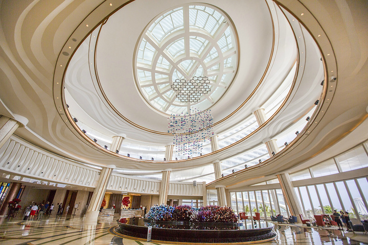 步入酒店的大堂,真的很难用词语来描述眼前的情景。巨大的椭圆形穹顶很有层次感,在白天只需自然光就可以保证照明的需求。