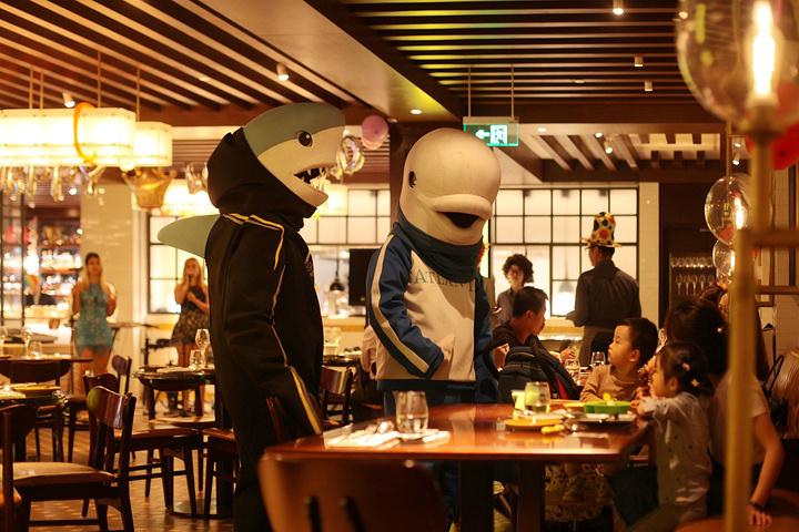 餐厅里面还有制作面食的互动区域,增加了孩子们的动手能力和乐趣。还偶遇了亚特兰蒂斯的人偶,一个是小海豚,一个是小鲨鱼。