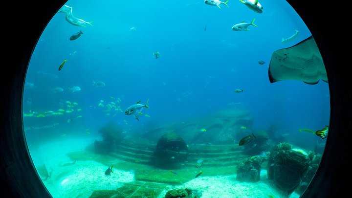 与其他的水族馆不同的是,这里运用了亚特兰蒂斯文明的仿古建筑,有那么一瞬间,你会感觉真的穿越到了远古的时代,每一处细节透着意想不到的惊喜。