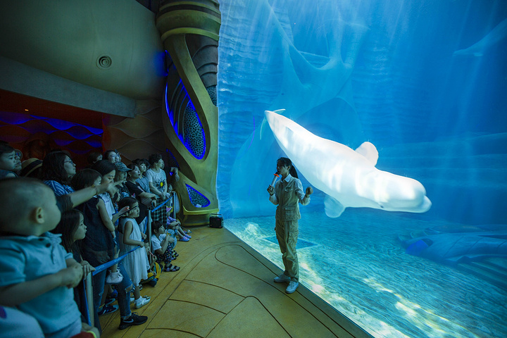 在规定的时间内,会有与白鲸互动的环节,这不仅仅是小朋友们的最爱,整个现场的人都跟着嗨了起来。自由自在的白鲸更是可爱到了极点,看到小朋友在等着拍照,就游了过来呆在那里,仿佛在说:合影算我一个。