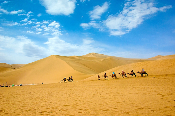 D4 敦煌--莫高窟(世界文化遗产)--《又见敦煌》(王潮歌导演文化情景剧)(费用自理),--鸣沙山月牙泉(骑骆驼观日落)--沙洲夜市聚餐
