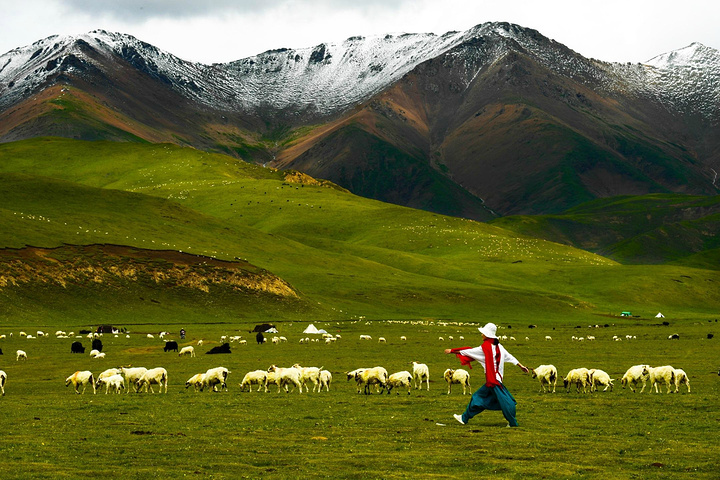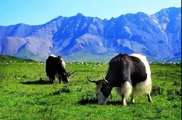 每年7、8月间,与草原相接的祁连山依旧银装素裹,而草原上却碧波万顷,马、牛、羊群点缀其中,被评为中国最美六大草原之一。