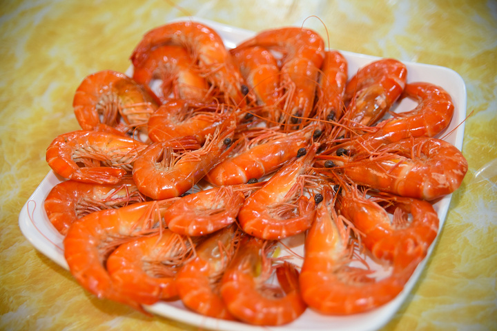 满满一盘虾非常实惠养眼,比一般的虾个头要大一些,每只虾肉都很饱满有弹性。鲜红的虾壳里微红白嫩的虾肉纤维质感很强,因为没有多加什么辅料,新鲜海虾的自然原味被白灼一烧就出来了,咬下去好像能从它本身的肉质里迸发出微微的鲜甜味来,味道绝美。而且林姐店里很贴心的会配有一次性手套,也不用担心满手都是海鲜不好清理。