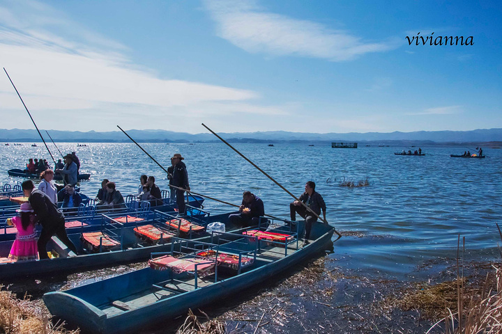 到达目的地,街边有很多卖帽子的~没准备的小伙伴赶紧买上一个吧,砍价完基本十元一个,很划算。草海游玩一定要坐船,你能看到很多车到不了的地方,一条船150,可以坐6个人。