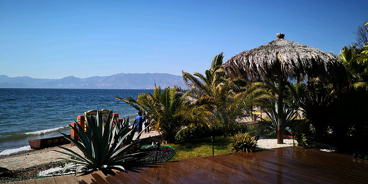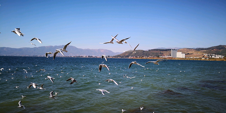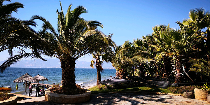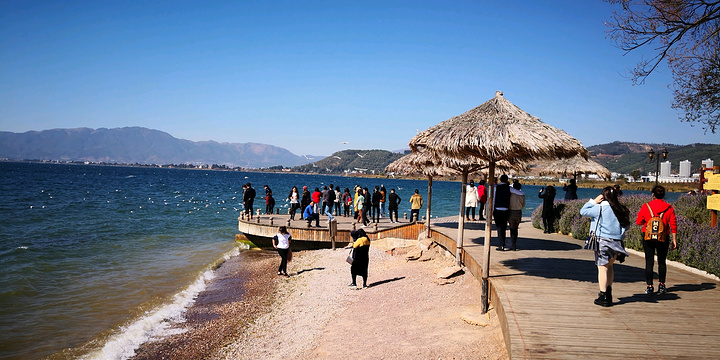 从禄充景区沿环湖路向北行23公里,就到樱花谷。这是由某地产商投资开发,为楼盘配套的纯人工打造的湖边公园。目前暂没收费。虽说是人造景点,但也造得精致别样。一座廊桥横跨环湖路,上书"樱花谷"三字,壮观大气。