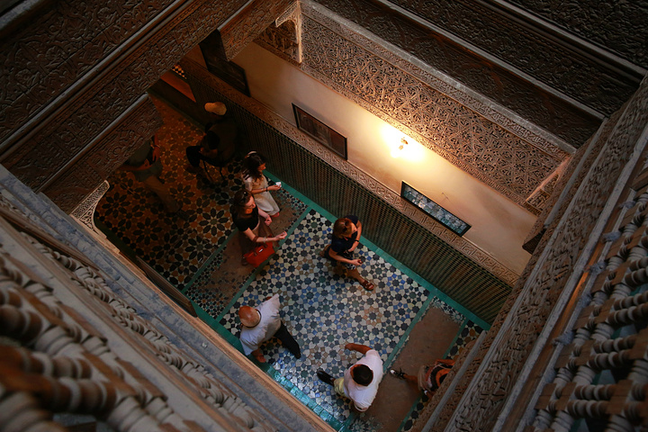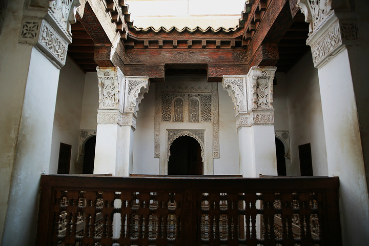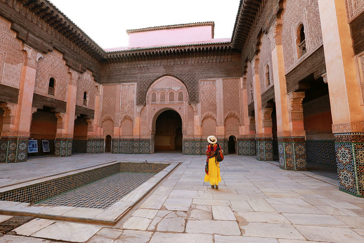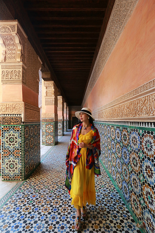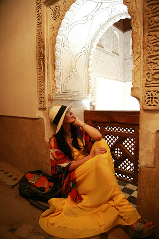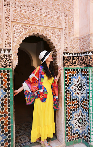 迈入学院的门槛,即被里面的由安达卢西亚和阿拉伯相融合的对称式的建筑风格所深深吸引,奢美无比的木雕石刻和马赛克瓷砖的拼镶,每一种材质的完美表达,不同材质间的顺畅过渡,每一个细节都无可挑剔,廊,柱,拱门,雕窗……组成一座庄严神圣的神学院。它的构建不仅体现了当时摩洛哥的高超的建筑工艺,也透视出当时摩洛哥民众对伊斯兰教的虔诚热爱。由于近些年来好多的恐怖分子都来自信奉伊斯兰教的阿拉伯国家,让不了解这个宗教的人们误认为伊斯兰教就是邪教,其实伊斯兰教在世界能传播如此之广,在其初期它的先知卓见真还是非常强大的,比如其先知穆罕默德提出要让穆斯林们崇尚科学,要努力学习,不盲从、不迷信。教导人类应用智慧和观察的能力来认识真理。它的包容性打破了狭隘的民族界限,崇尚和平,喜好团结,深受大众的喜爱和追随。在当时,它是先进积极的宗教,曾大大地促进科学文化的进展和交流。由于历史,经济,社会等因素的振荡,欧洲海上之路的开拓发展,使得原有的阿拉伯国的贸易地位极快地没落,加上阿拉伯世界的君主制的保守自闭,社会经济出现后退现象,而阿拉伯世界的人民对欧洲强国及美国的入侵或掠夺的反感及仇视及伊斯兰教遭受统治阶级的利用和曲解,变得固步自封,甚而有的时候显现出极端的现象,但我认为这只是它的一个不好的阶段而已,大多数的穆斯林仍然和以前一样信奉着和平,向往着真理。