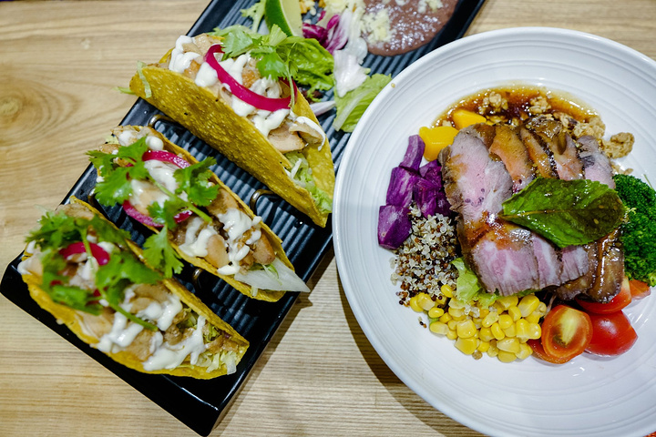 肉哥点的披萨和 意大利 面中规中矩,但是推荐猪肋排以及我们点的能量碗非常棒。taco的味道似乎根据国内口味改良了。