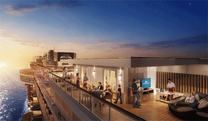 •超大海上阳台——星空套房位于顶层甲板中央,并配有公主邮轮全球船队中最大的私人阳台,面积分别为94平方米(右舷星空套房)和88平方米(左舷星空套房)。超大海上私人阳台将为宾客带来星空影院观影的绝佳视野、270度的极致观景体验,以及更加广阔的娱悦空间。套房可容纳五位宾客,是家庭宾客的理想选择。
