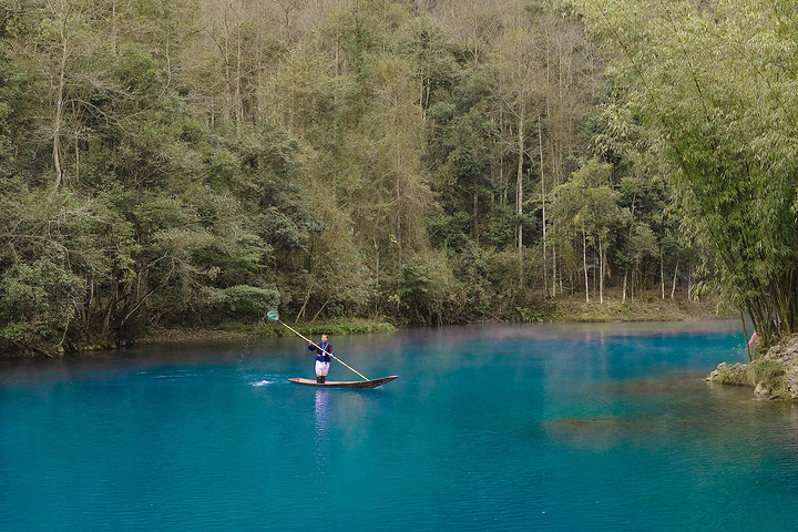 卧龙潭湖水湛兰清澈,岸上的绿树、竹林倒映湖中,色彩斑斑斓绚丽,可与“九寨沟”、“七彩湖”媲美。最南端的卧龙潭,那个水哟真的是蓝绿色的宝石一样,两岸的竹林倒映其中。