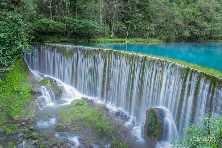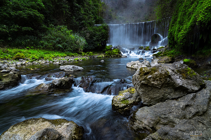 卧龙潭,原名翁龙潭,是喀斯特暗河——卧龙河的出口处。暗河从崖底涌出,潭面上不见踪影,只见卧龙坝雪崩似的滚水瀑布,潭外流淌不息的渠水,才感到卧龙河在潭底翻动。