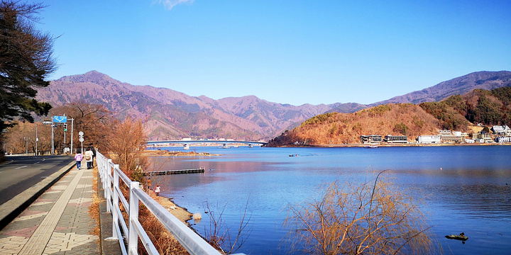 河口湖车站外是景区巴士,可购买景区内的周游券或者用suica。